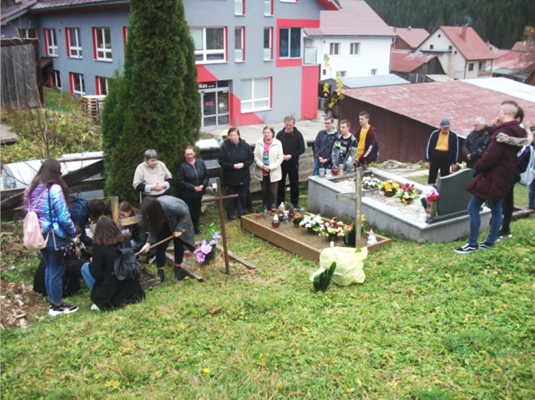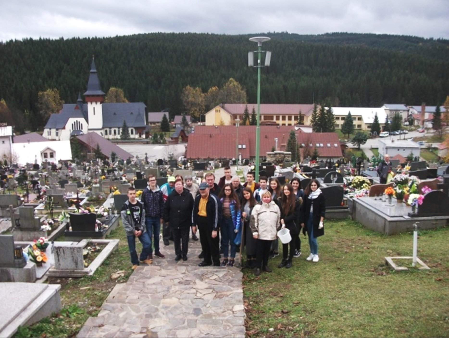 V období jesenných práznin sme dňa 29.10.2018 na pracovisku v Oravskej Lesnej v rámci dobrovoľnístva srdečne privítali študentov Gymnázia Antona Beroláka v Námestove, ktorí seniorov potešili programom a sladkou bábovkou, ktorú pre nich upiekli. Zároveň pred sviatkami Dušičiek študenti spolu s našimi seniormi navštívili aj cintorín, kde majú miesto posledného odpočinku aj naši zosnulí prijímatelia. Spoločne vyčistili ich hroby, položili kvety, zapálili sviečky a v tichých modlitbách spomínali na všetkých, ktorí tu spia večným spánkom