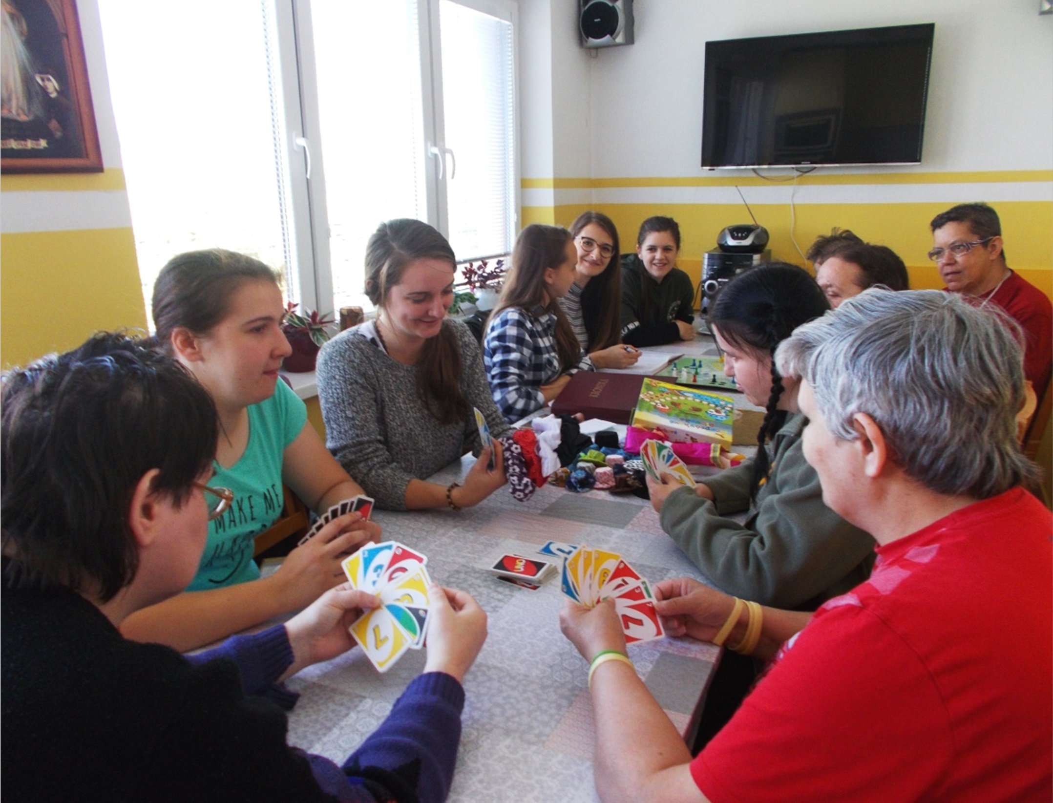 Dňa 30.06.2018 sme privítali dobrovoľníčky z občianskeho združenia V.I.A.C z Trstenej. Prijímateľky sociálnych služieb si spolu s dobrovoľníčkami zahrali rôzne spoločenské hry, karty a "Človeče nehnevaj sa." Bolo príjemne a veselo. Aj keď bolo vonku chladno ostali pekné zážitky.