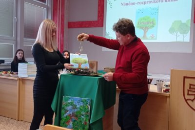 Nápadom Strednej odbornej školy podnikania a služieb v Námestove sa podarilo opäť spojiť ľudí pre prírodu Oravy . Vedeli ste o tom, že na území Oravy máme krásne niekoľko storočných chránených stromov ? Desať záujmových skupín z celej Oravy, sa zhostilo úlohy patrónov týchto stromov. Medzi nimi aj naši prijímatelia. V ybrali sme si jeden strom, napísali o ňom krátky príbeh, ilustrovali ho a navštívili aj miesto, kde tento chránený strom skutočne rastie. Príbeh sa stal súčasťou tejto nádhernej knižnice.