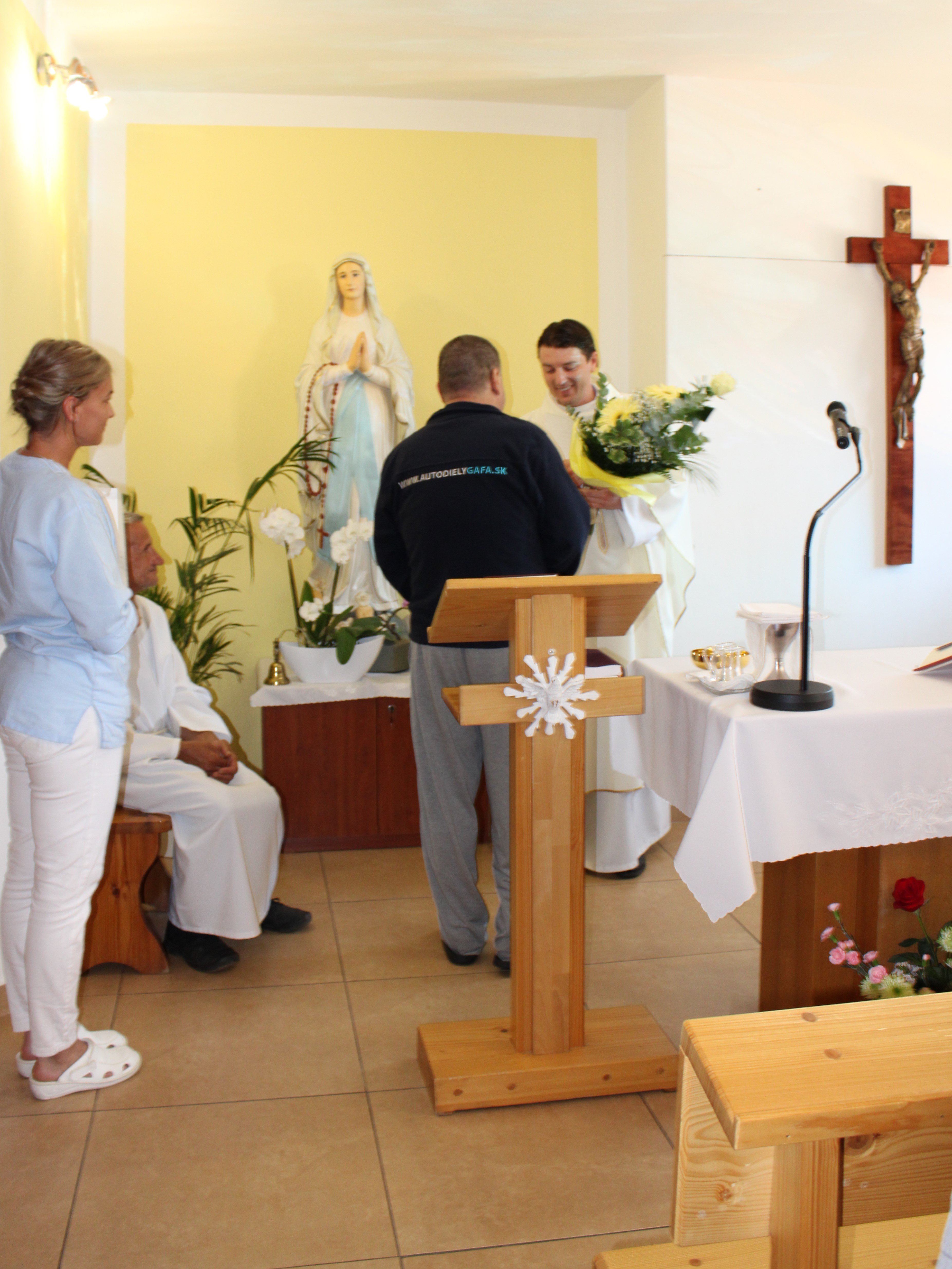 Pán kaplán v mene všetkých zamestnancov a prijímateľov Vám ďakujeme za každé milé slovo, za každú sviatosť a za všetko, čo ste pre nás urobili. V novom pôsobisku Vám prajeme mnoho Božích milostí, požehnania a síl v kňazskej službe.